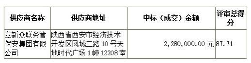 立新众联务管保安集团有限公司评审总得分:209.50分;评审平均分:69.83分;最终得分:87.71分