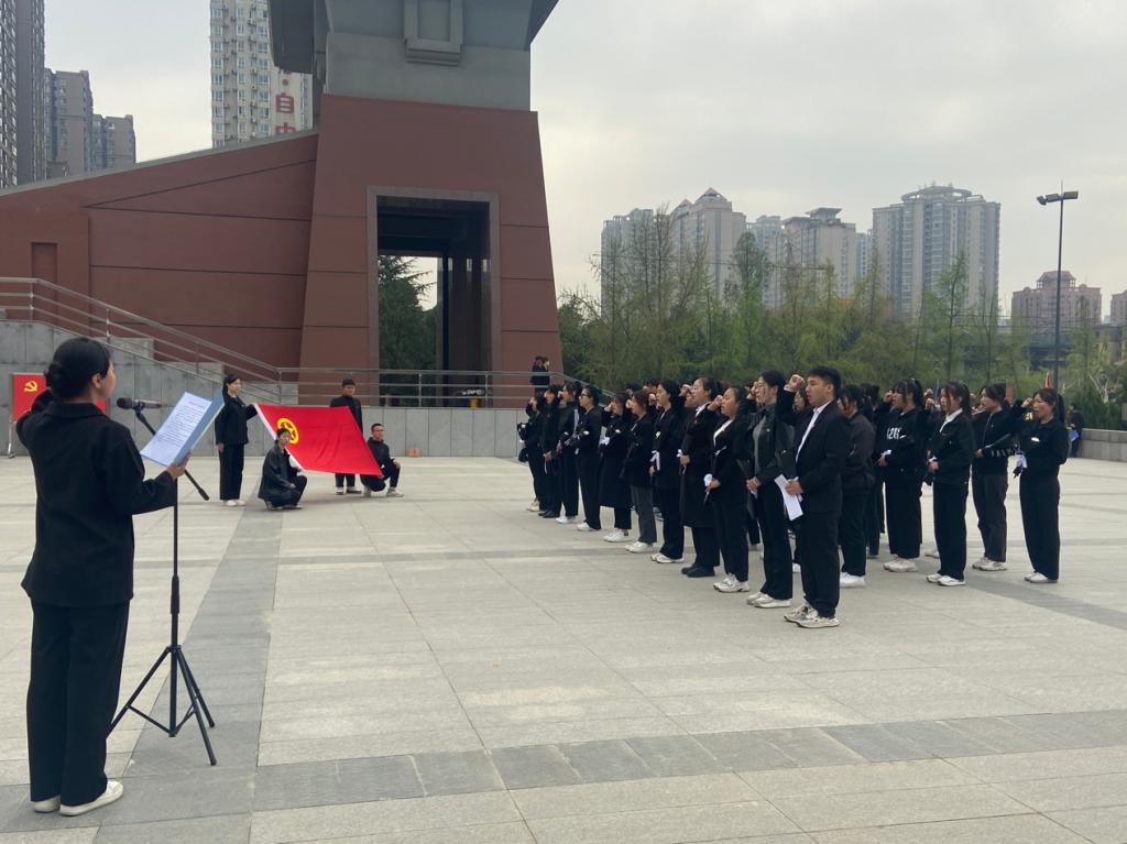 全体团学干部统一着深色服装,在烈士陵园纪念馆旁的浮雕广场缅怀先烈,默哀三分钟,并敬献花篮以寄哀思。交通运营服务系团工委书记康馨月在发言时说,将牢记习近平总书记嘱托,铭记光辉历史,传承红色基因,进一步增强党史学习的思想自觉和行动自觉,以一往无前的奋斗姿态和永不懈怠的精神,勇挑重担、苦干实干,在学习领悟中不断坚定理想信念,在新时代新征程上留下许党报国的奋斗足迹。随后,学生代表宋燕雪带领全体同学重温入团宣誓词。同学们庄重而坚定的声音昭示着传承革命精神的决心。活动最后,全体团学骨干有序前往烈士墓碑,悼念革命英雄,缅怀先烈的丰功伟绩。