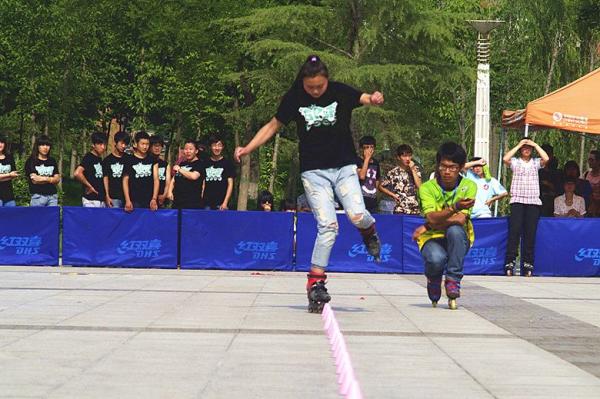 近日,我院SRT沙尘暴轮滑社部分同学赴陕西科技大学参加了由陕西省教育厅主办的陕西省大学生轮滑比赛。参赛的7名队员,参加了甲、乙组速度过桩、花式刹停等共4个组别、5个项目的比赛,经过激烈角逐,吴虎同学获男子甲组速桩比赛第四名,罗园宁同学获女子甲组速桩比赛第七名,樊雨同学也在乙组花式刹停比赛中晋级十六强。同时我院吴虎同学获“优秀运动员”称号。