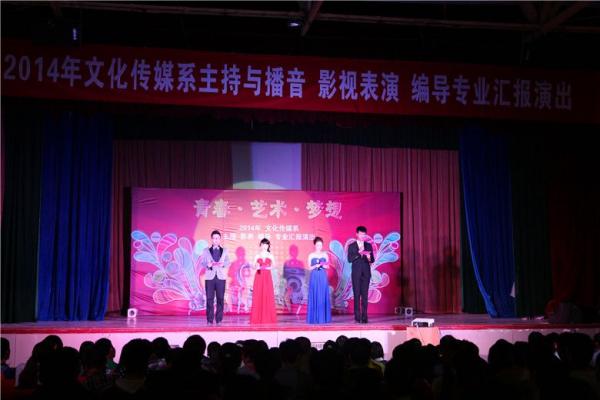 4月29日晚,文化传媒系主持与播音、影视表演及编导专业汇报演出在青华校区学生活动中心成功上演。学院院长刘峰,副院长赵兴刚、宁建飞及学生处、教务处、保卫处、管理系主要负责人同文化传媒系部分处级干部联系人、部分校企合作单位代表、全体师生共千余人观看了本次演出。